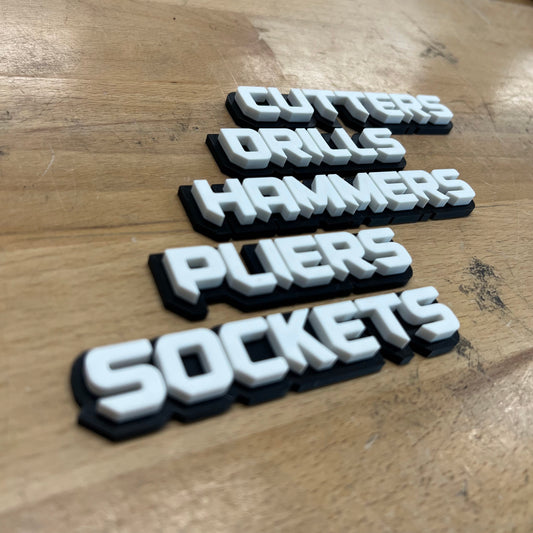 Custom Toolbox Drawer Emblems Set - Sharp Font - Choose