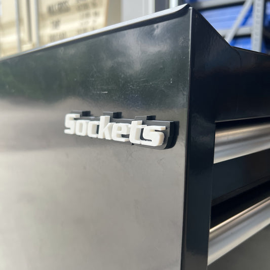 Custom Toolbox Drawer Emblems - 14 Piece Set As Shown - Italic Font