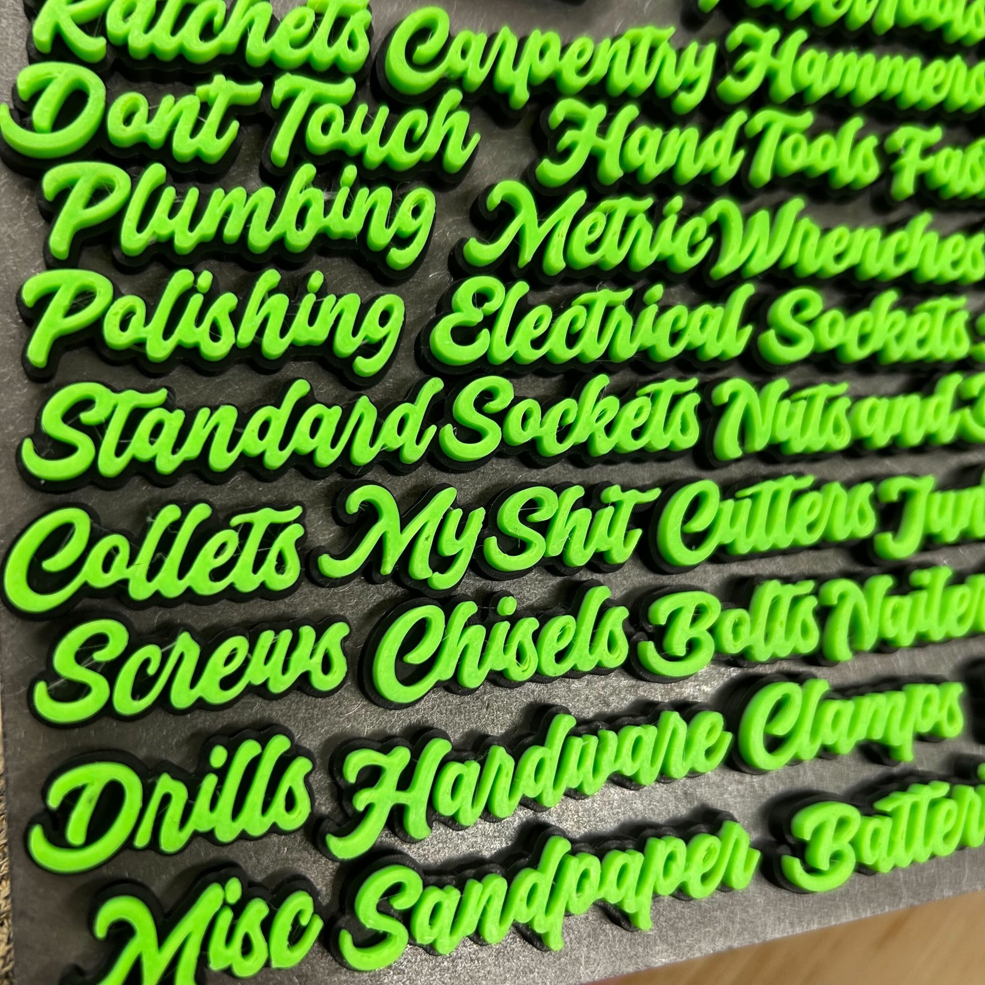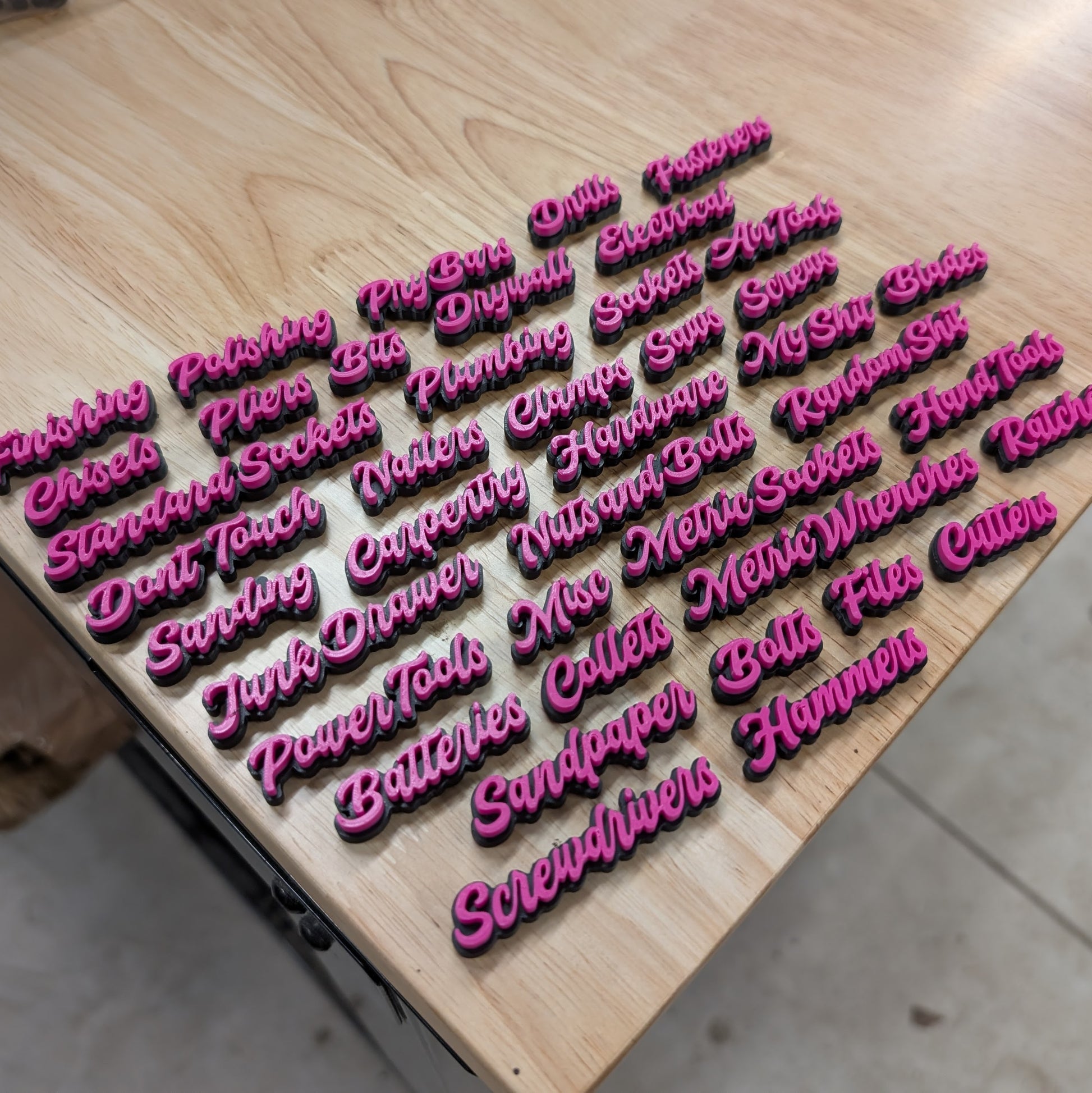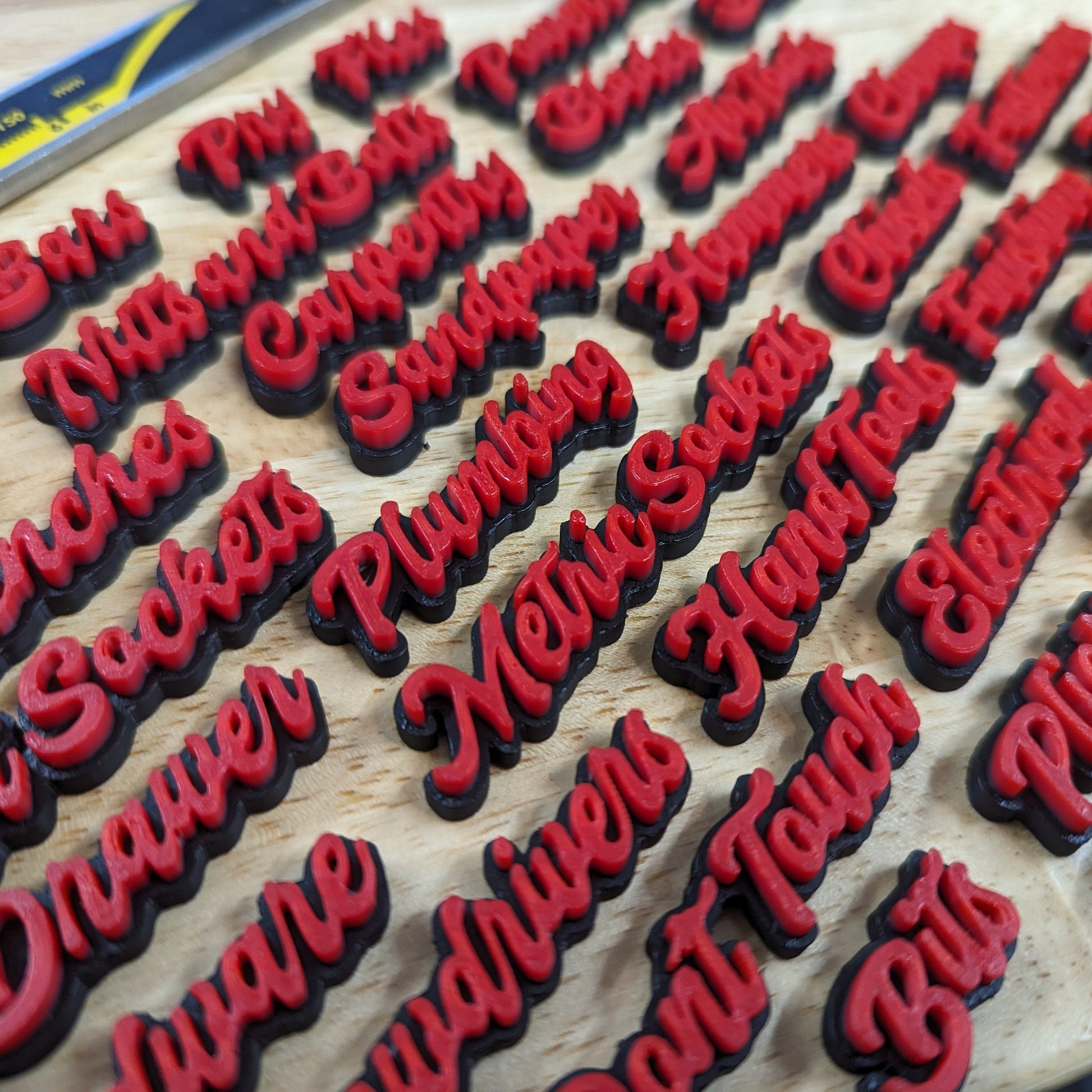 Ensemble d'étiquettes pour boîte à outils Script Mini - 42 pièces - Économique - Plusieurs choix de couleurs
