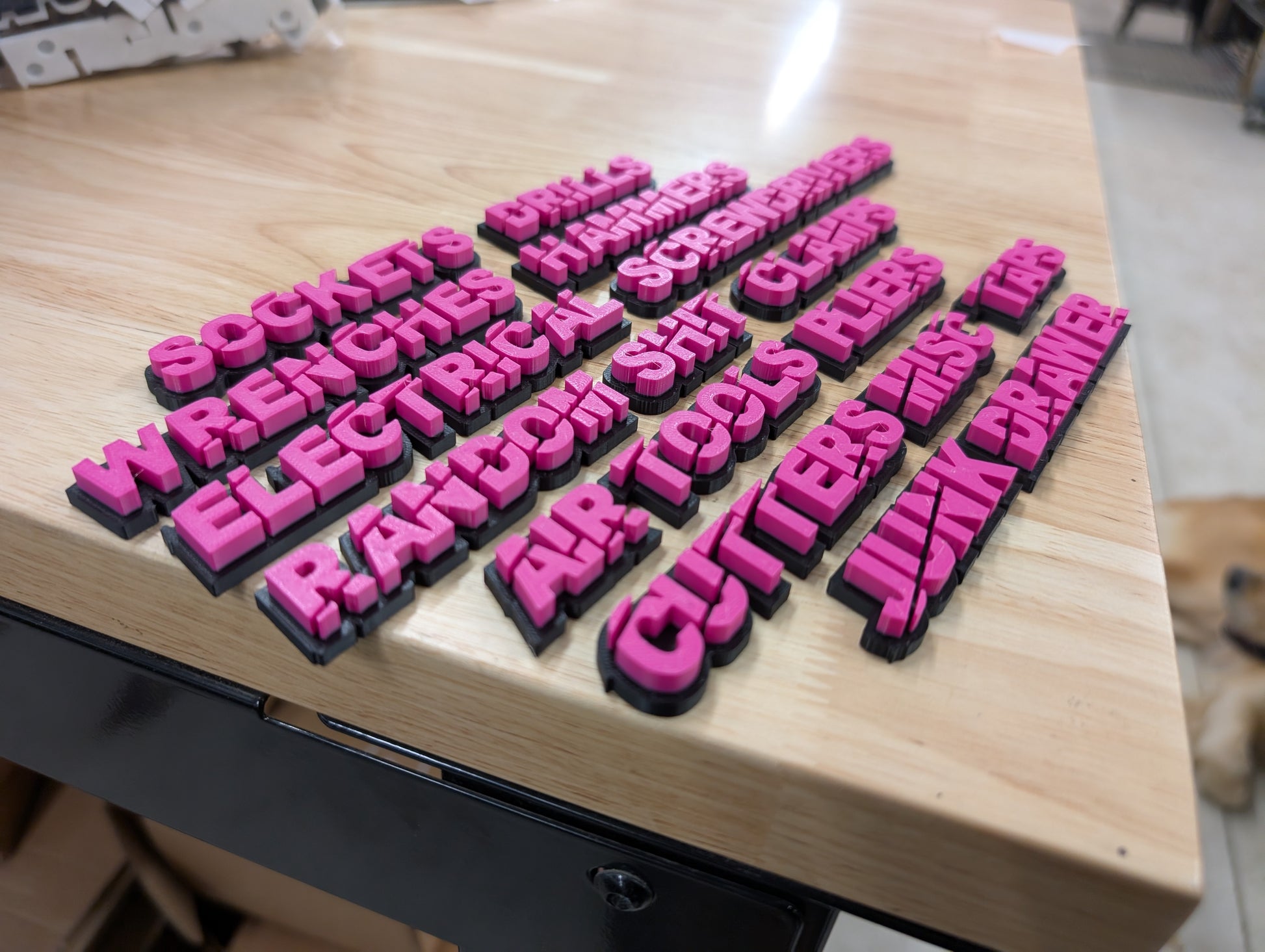 Emblèmes de tiroir de boîte à outils personnalisés - Police Slash - Ensemble de 17 pièces comme indiqué - Plusieurs couleurs disponibles