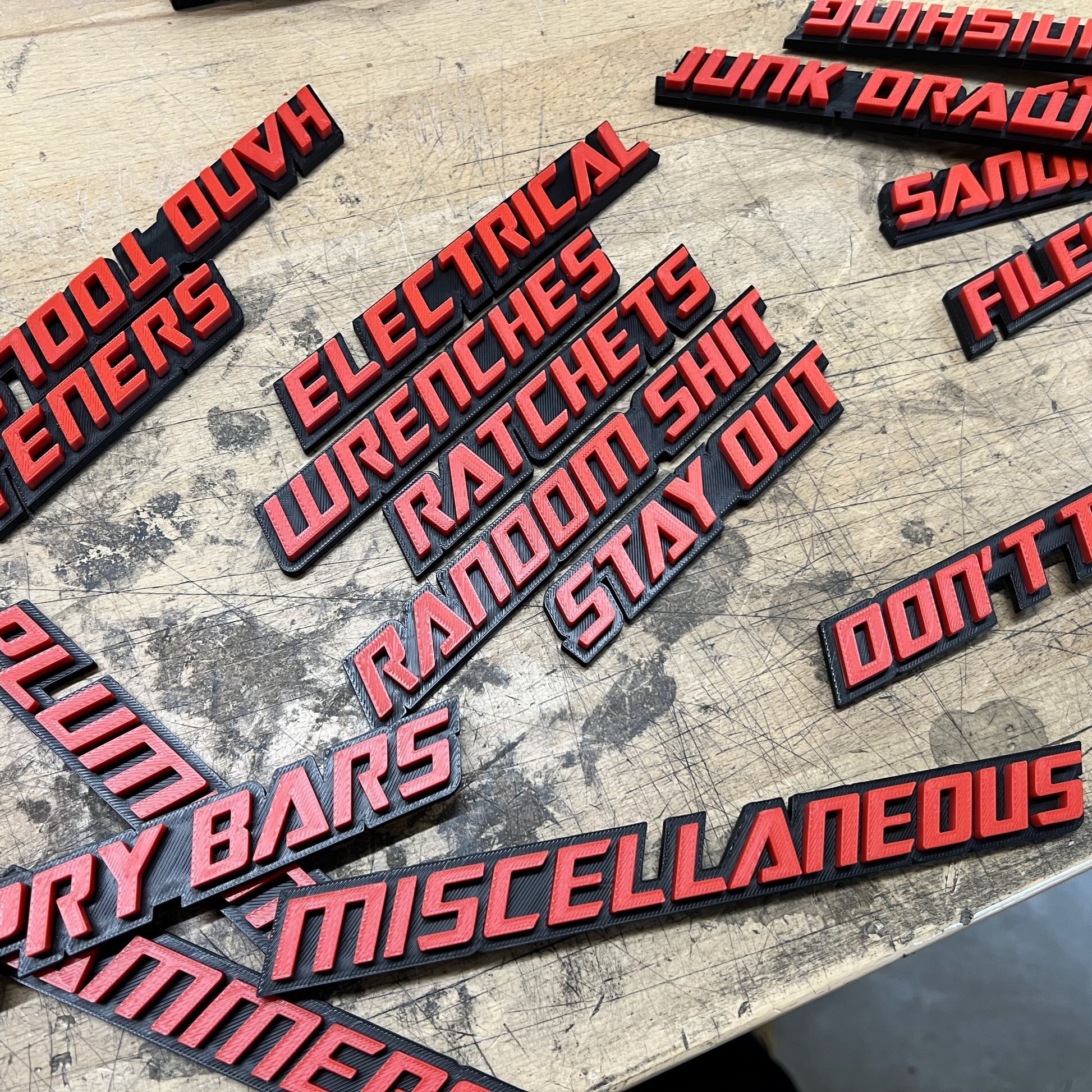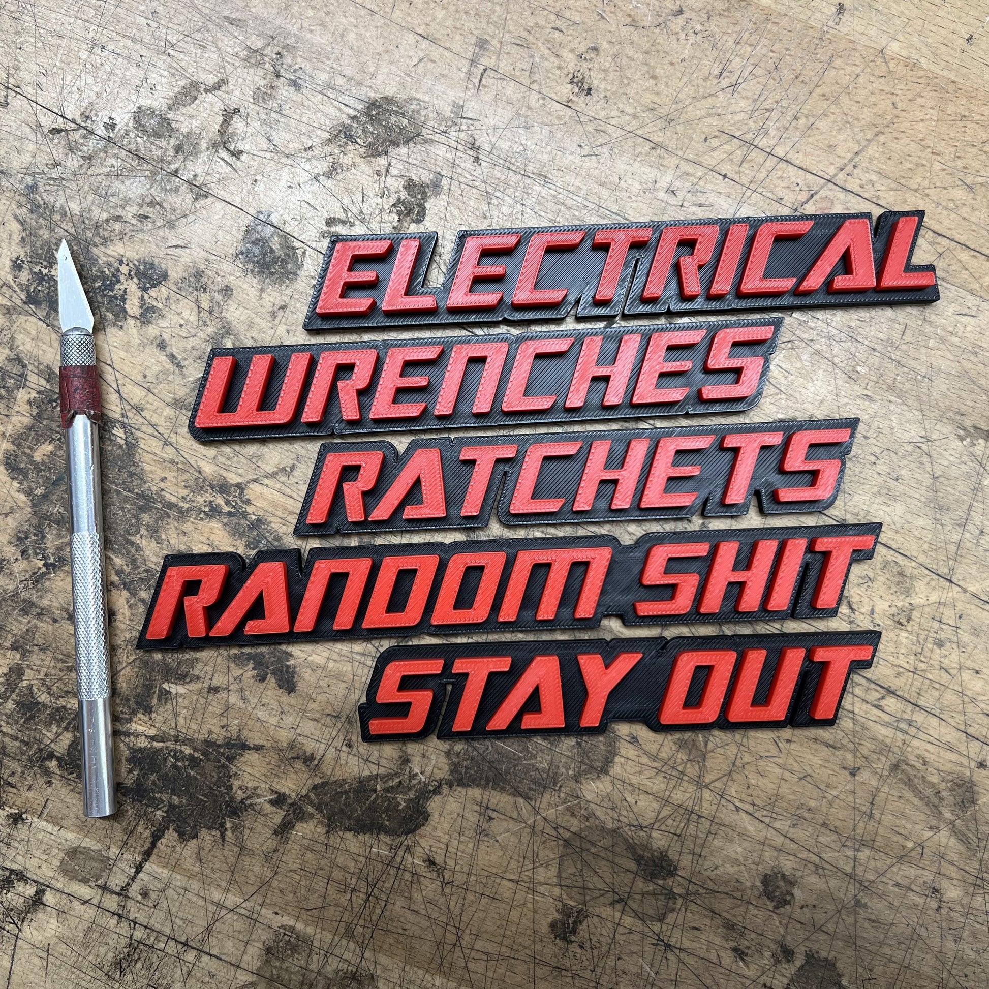 Badges de boîte à outils - Choix de 5 - Double couche - Police Moto - Plusieurs choix de couleurs