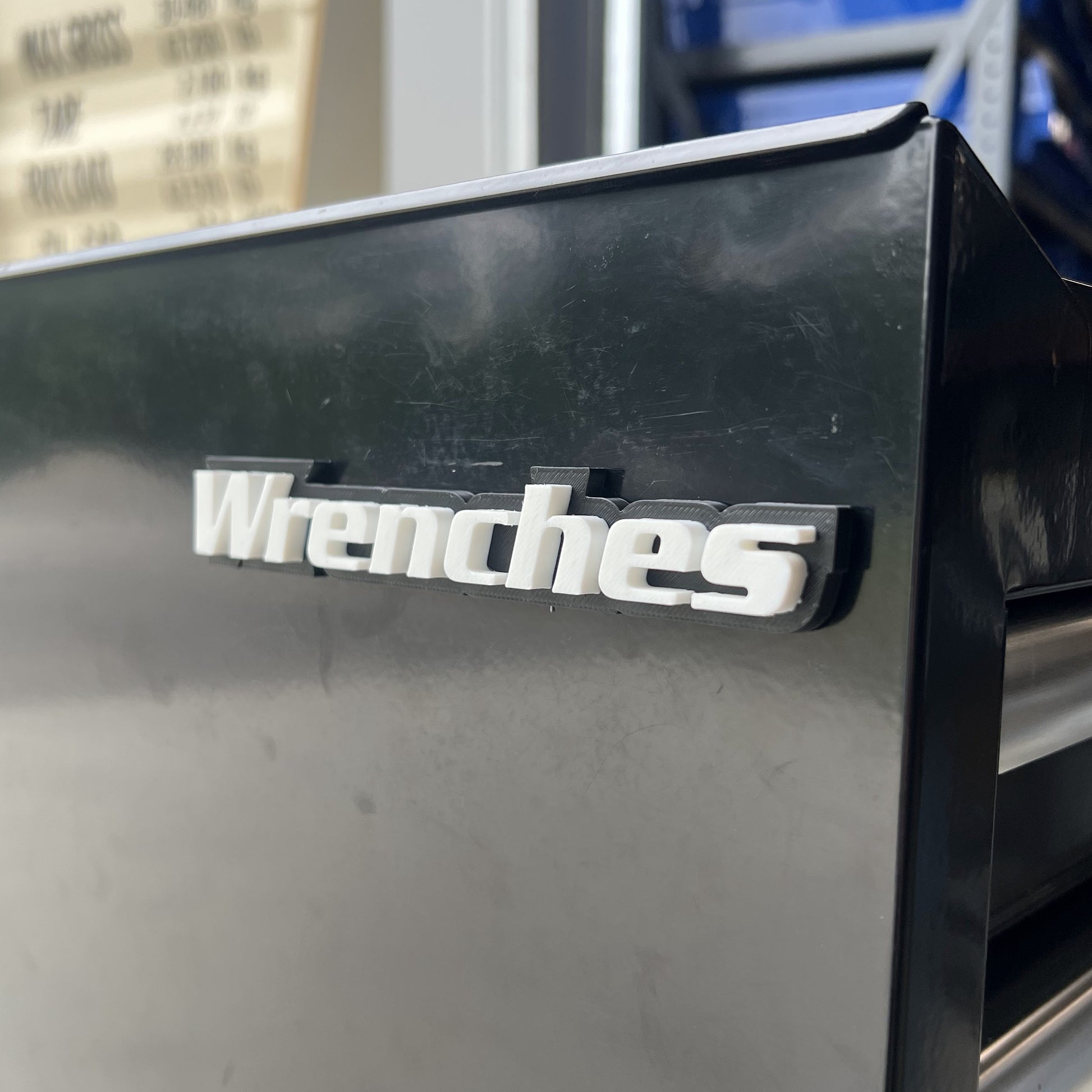 Quality, precision cut toolbox Wrenches badge, made specially for toolboxes and shop use. These emblems are cut from acrylic and come with a strong magnetic backing, for easy replacement and reorganization of your toolbox drawers. Need more? Add the individual badges to your cart afterward from our Toolbox Emblem page! All orders over $99 ship for free.